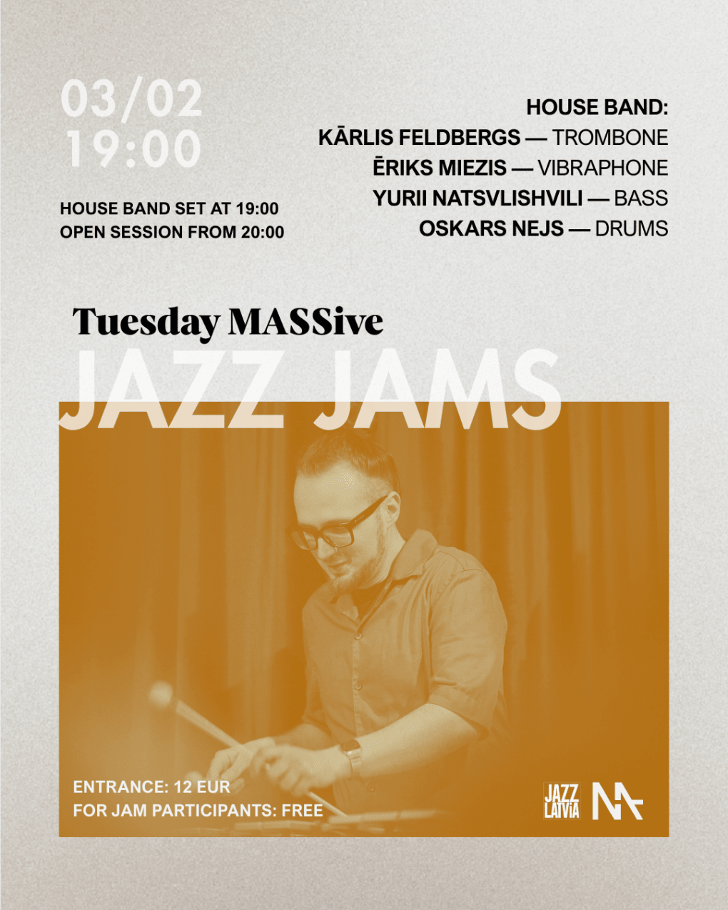 Event "Tuesday MASSive Jazz Jams | 03/02" organizer: MASA studija SIA