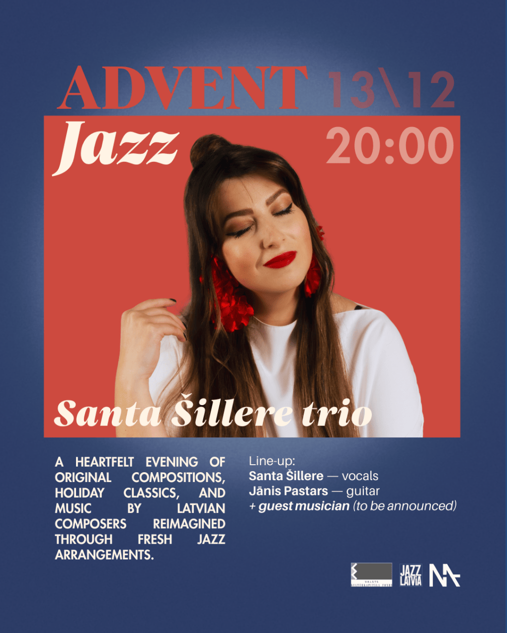 The opening concert, “Jazz and Christmas,” will feature vocalist Santa Šillere and guitarist Jānis Pastars. Expect a heartfelt evening of original compositions, holiday classics, and music by Latvian composers — all reimagined through fresh jazz arrangements.