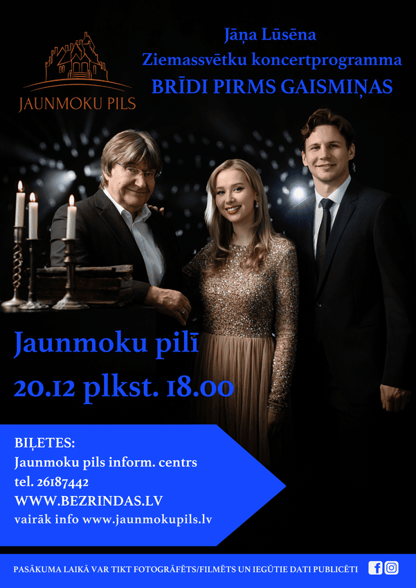 Informējam, ka pasākuma laikā notiks fotografēšana un filmēšana. Attēli un video var tikt izmantoti Jaunmoku pils publicitātes un pasākumu atspoguļošanas nolūkos