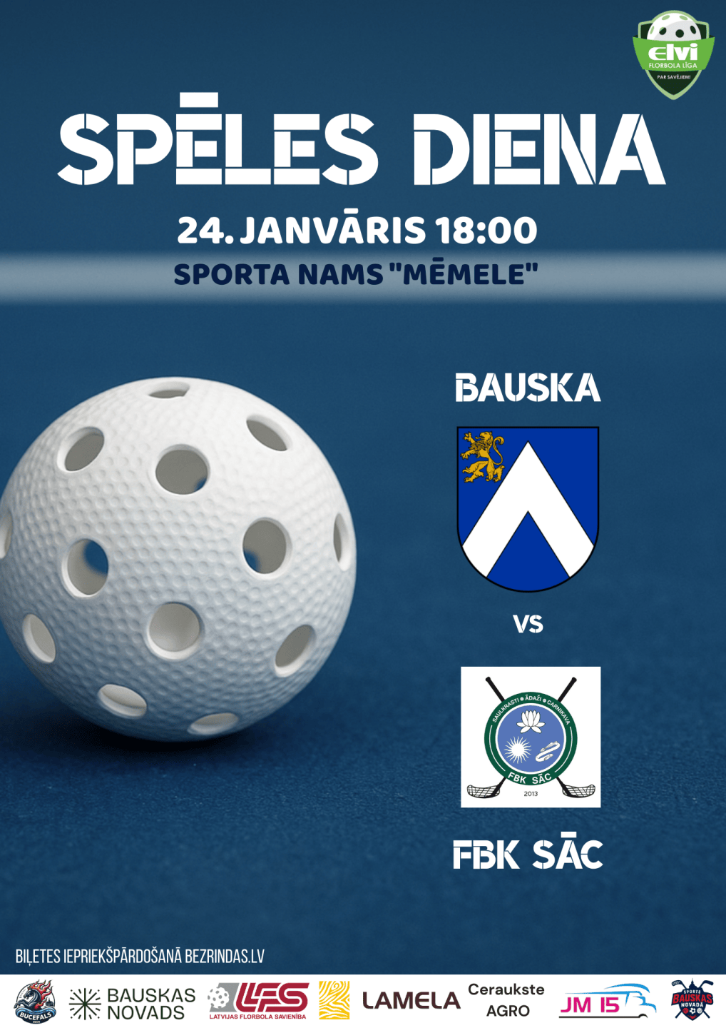 Biļešu cena uz Elvi vīriešu florbola līgas komandas “Bauska” mājas spēli: 4.00 € + komisijas maksa.