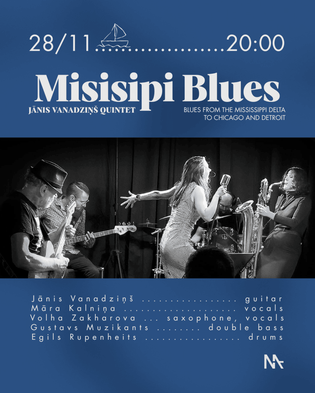 Vanadziņš Trio+, which in fact is a quintet, will dive into the roots of Mississippi Delta blues — the music that later travelled up the river to Chicago and Detroit, gaining an electric sound and the pulse of the city.