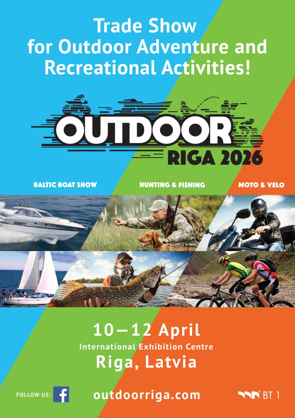 The OUTDOOR RIGA 2026 tradeshow promotes outdoor adventure and recreational activities combining the International Trade Fair for Boats and Yachts “Baltic Boat Show”, the International Fair for Hunting and Fishing Gear and Accessories "Hunting & Fishing" and the Trade Fair for Motorcycle and Bicycle Lifestyle "Moto & Velo" under a single brand name.