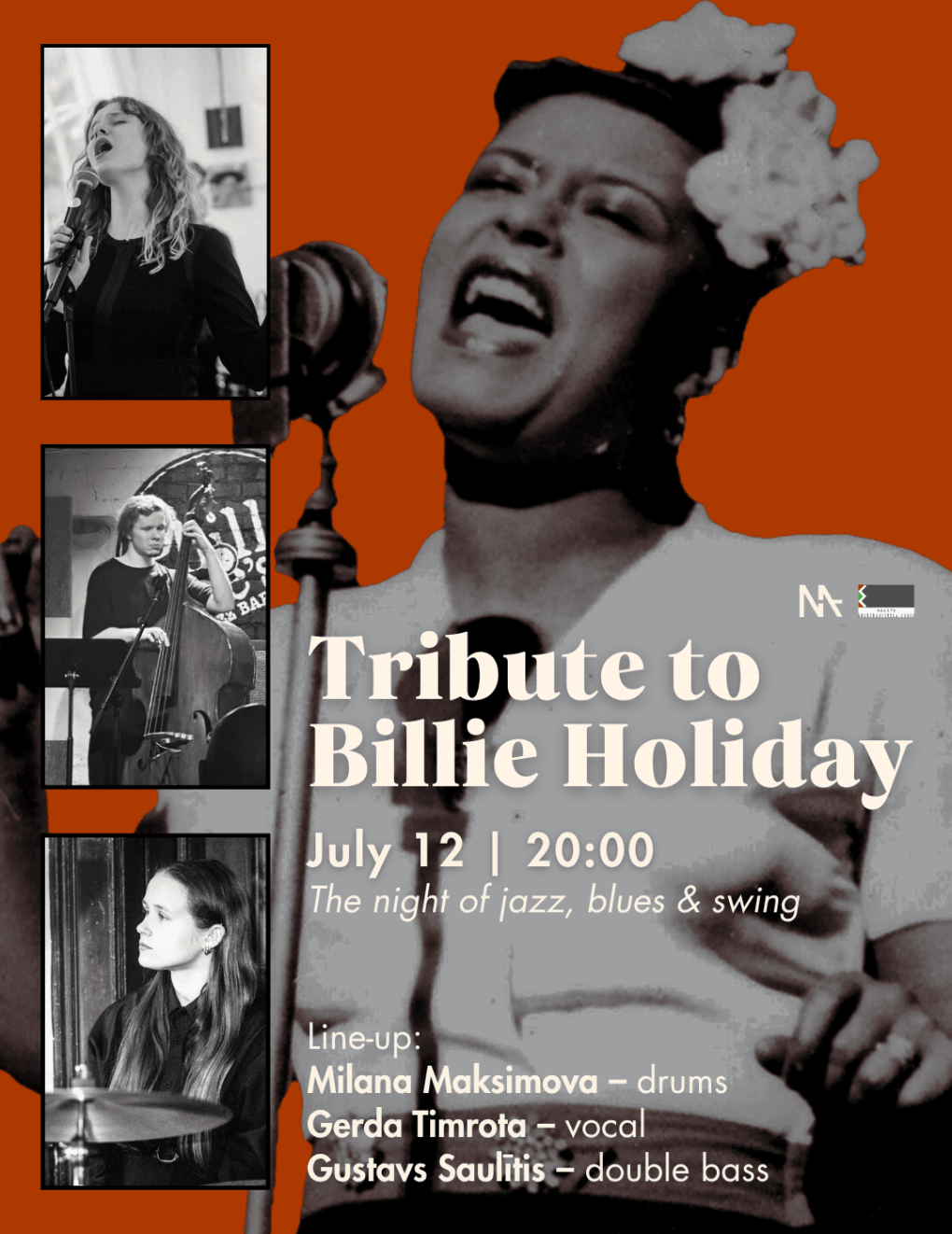On Saturday, July 12, MASA Kultūrbārs will present a concert featuring songs from the repertoire of the legendary jazz singer Billie Holiday. Her music is known for its profound emotional depth, melancholic mood, and distinctive vocal style, seamlessly blending traditional jazz with blues and swing elements.