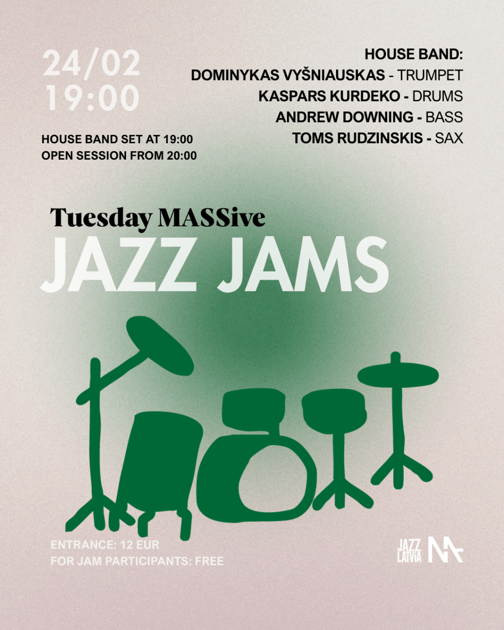 Event "Tuesday MASSive Jazz Jams | 24/02" organizer: MASA studija SIA