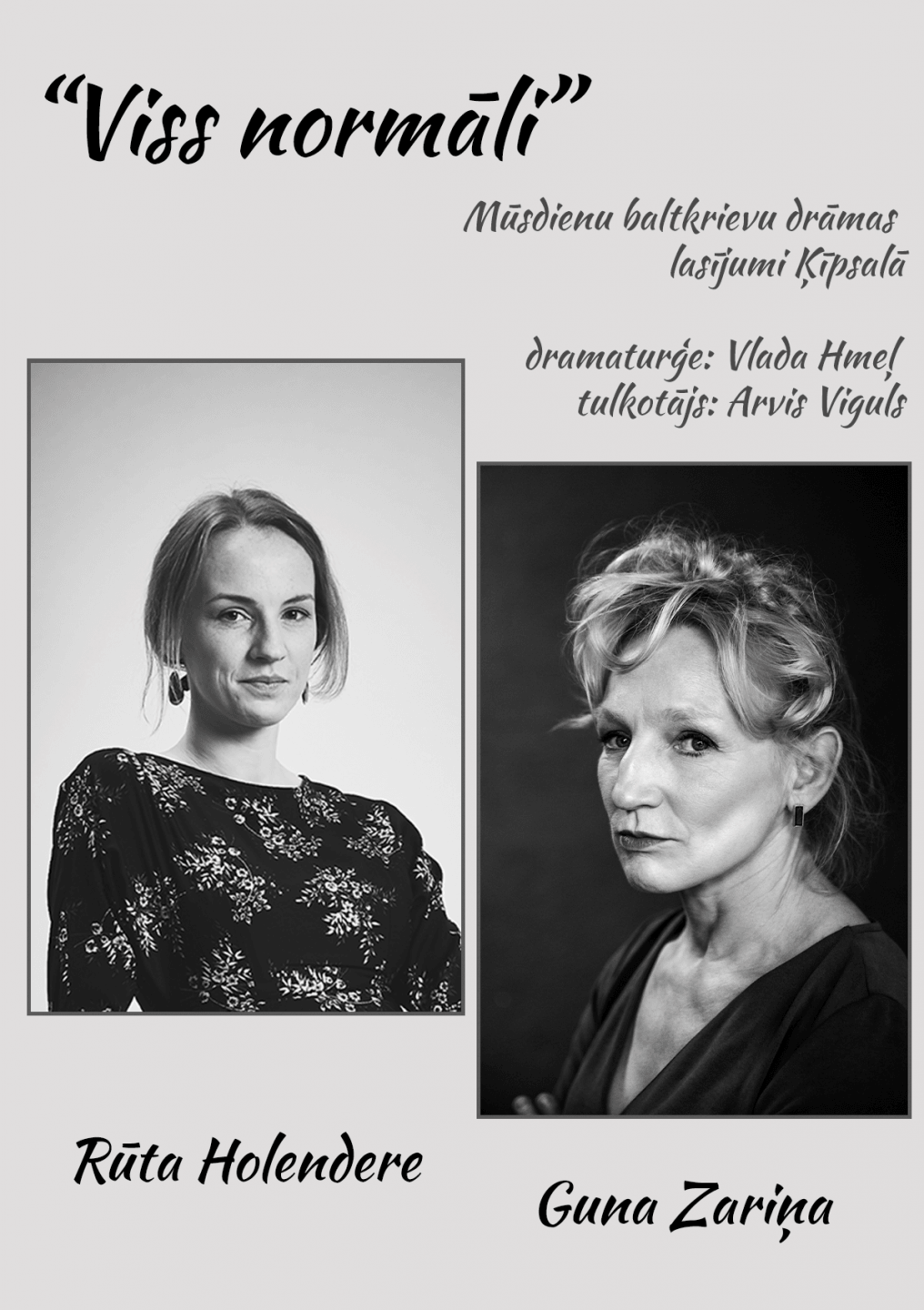 Vladas Hmeļ lugas "Viss normāli" lasījums latviešu valodā.Lasījumā piedalās aktrises Guna Zariņa un Rūta Holendere. Režisore Jevgenija Šermeņeva.Lugu latviešu valodā pārtulkojis Arvis Viguls.