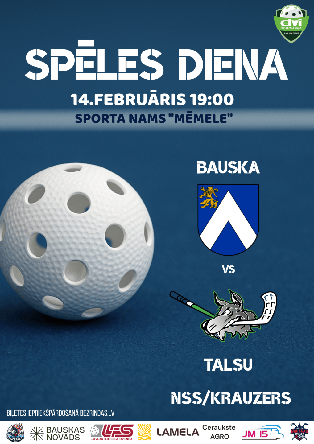 Biļešu cena uz Elvi vīriešu florbola līgas komandas “Bauska” mājas spēli: 4.00 € + komisijas maksa.