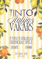 Erudīcijas vakars kopā ar Itālijas vīniem un uzkodām! Pasākuma laikā baudīsim dažādus Itālijas v...