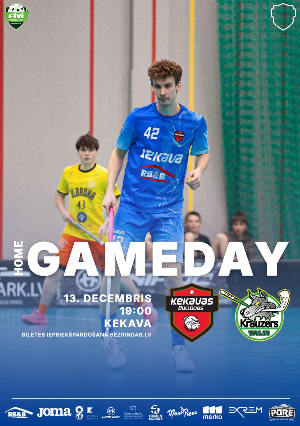 Ķekavas Bulldogs jaunās 2025/2026 vīriešu 1.līgas sezonas mājas spēle! Skolēniem un pensionāriem, uzrādot apliecību - 1.00 € + komisijas maksa. Bērniem vecumā līdz 7 gadiem un invalīdiem uzrādot apliecību - ieeja bez maksas. Pasākuma biļete ir derīga ieejai tikai vienu reizi. Ierobežotā skaitā biļetes iespējams iegādāties tikai www.bezrindas.lv. Pasākuma norises vietā biļetes tirgotas netiks. Ķekavas Bulldogs sezonas abonements 2025/2026 Vēl joprojām saglabājas ELVI vīriešu līgas sezonā izmaiņas noteikumos, kuri jāievēro spēļu apmeklētājiem - sporta zālēs uz spēlēm netiek ienestas un spēļu laikā netiek izmantotas taurītes un sirēnas, kā arī netiek ienesti dzērieni stikla traukos. Tāpēc aicinām līdzi nest tikai bungas, citus atbalstīšanas elementus, protams - arī jūsu skaļās balsis! Tiekamies spēlēs! |