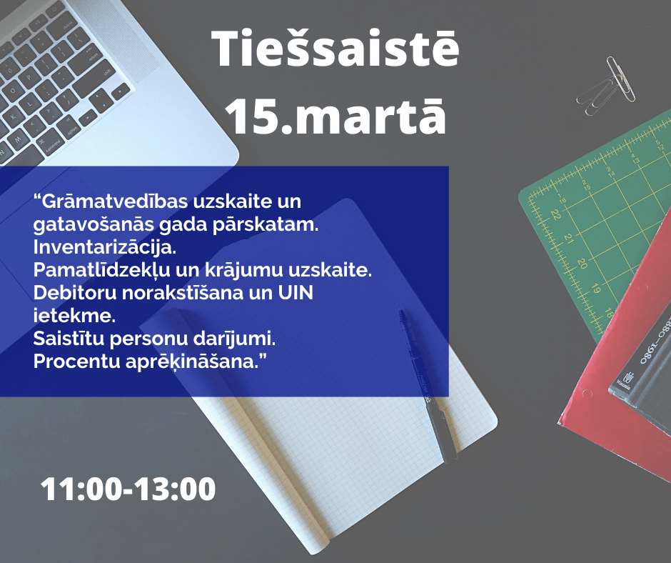 Norises laiks: 15. martā vebinārs, no plkst. 11:00 līdz 13:00