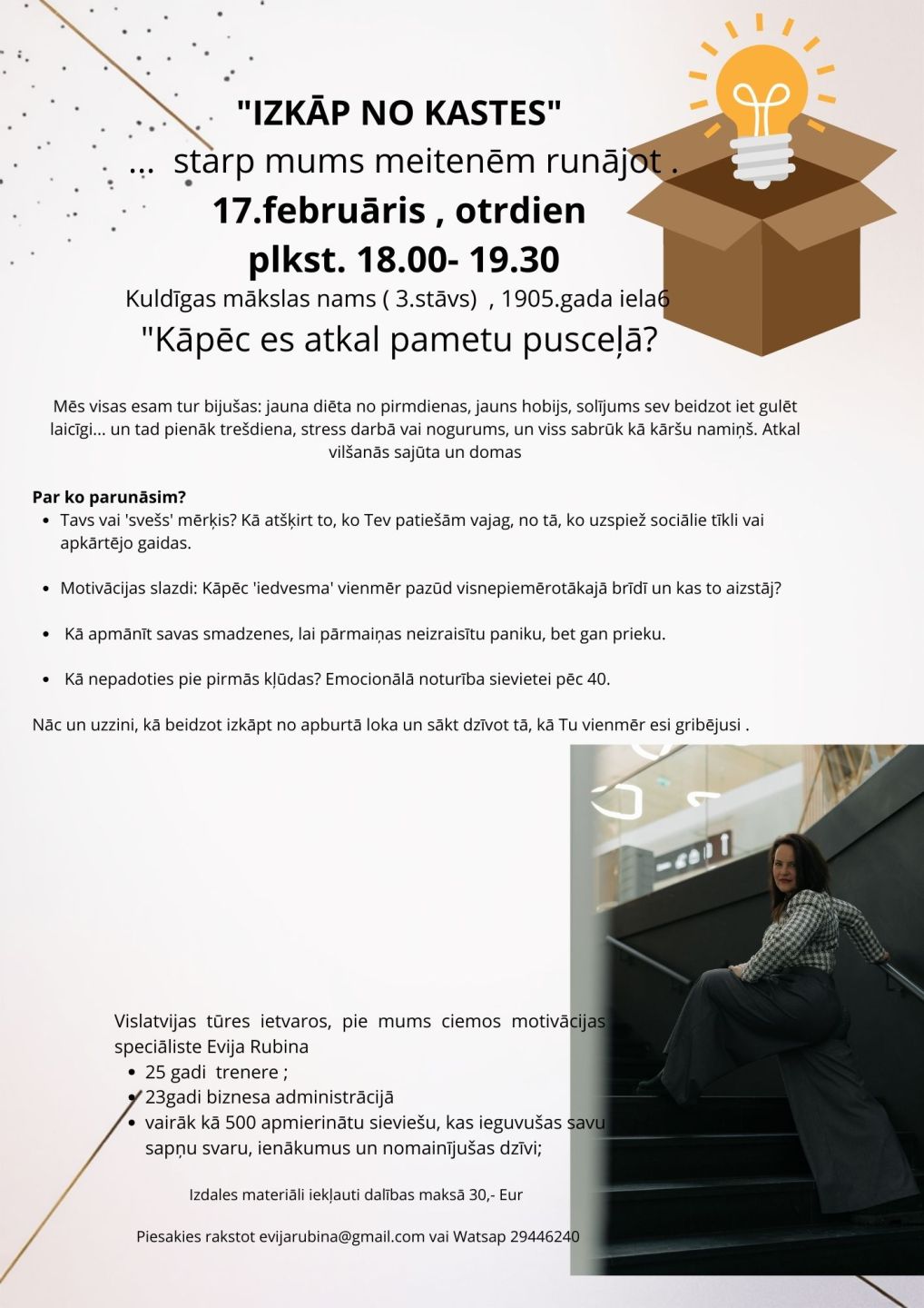 Pasākuma "Izkāp no kastes " organizators: Evija Rubina