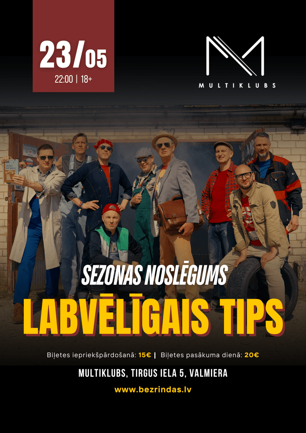 Labvēlīgais Tips ir pazīstams ar savu spilgto skatuves harizmu, asprātīgajiem tekstiem un neaizmirstamiem koncertiem, kas vienmēr pārvēršas īstā ballītē. Šī būs lieliska iespēja dzirdēt gan iemīļotākos hitus, gan izbaudīt īstu sezonas noslēguma svētku sajūtu.