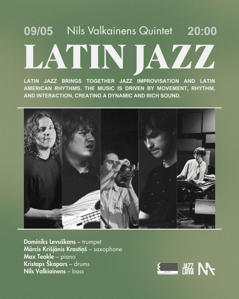 Kvintets izpildīs dažādu latīņu džeza stilu programmu, atklājot šīs mūzikas siltumu, enerģiju un raksturīgo noskaņu.