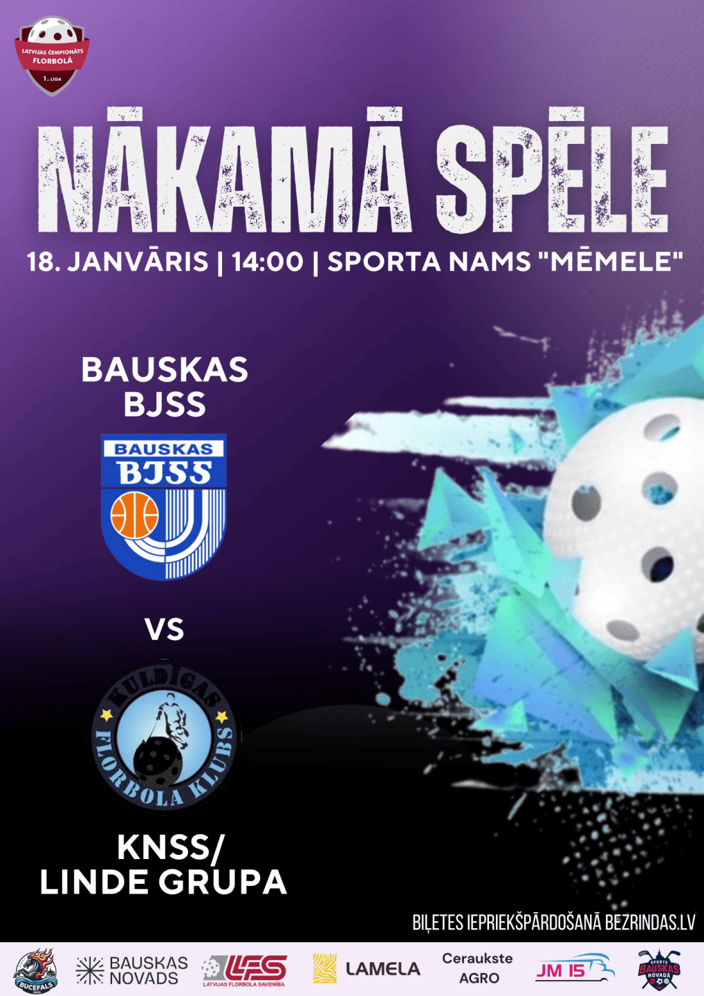 Latvijas čempionāts florbolā 1.līgā: Bauskas BJSS - KNSS/Linde Grupa (florbols)
