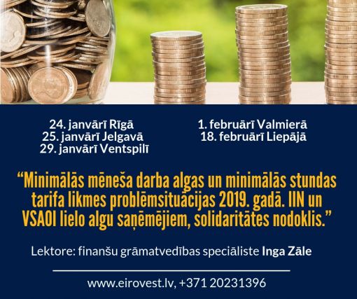 Pasākuma "Minimālās mēneša darba algas un minimālās stundas tarifa likmes problēmsituācijas 2019. gadā" organizators: EiroVest SIA