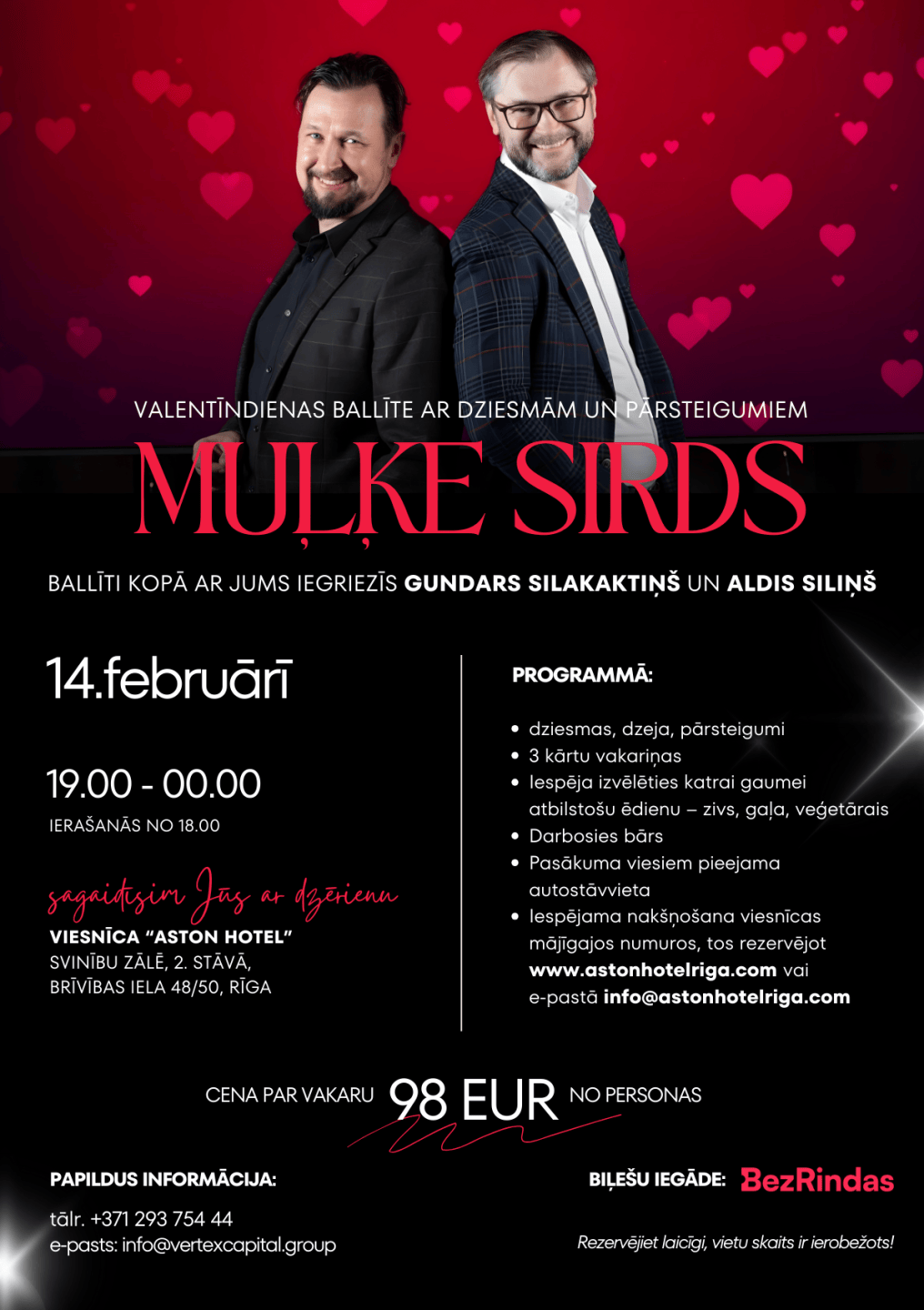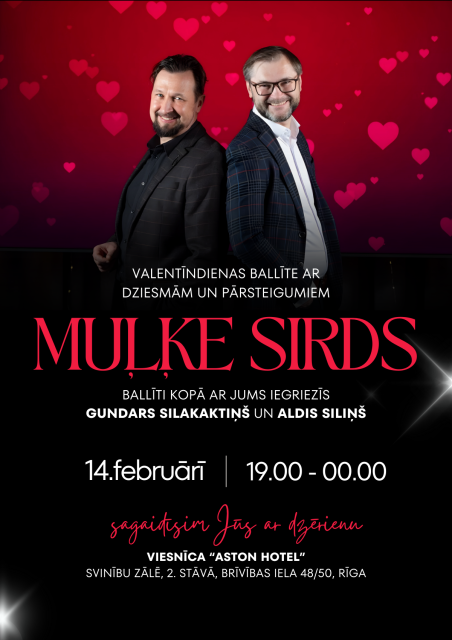 Valentīndienas ballīte ar dziesmām un pārsteigumiem. Ballīti kopā ar Jums iegriezīs Gundars Silakaktiņš un Aldis Siliņš. Ierašanās no 18.00, sagaidīsim Jūs ar dzērienu (bezalkoholisks dzēriens vai prosecco pēc izvēles).