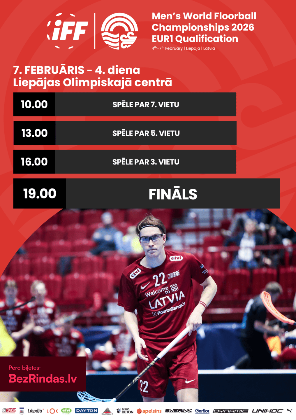 No 4. līdz 7. februārim Liepājas Olimpiskajā centrā norisināsies 2026. gada pasaules čempionāta florbolā vīriešiem kvalifikācijas turnīrs, kurā  astoņas izlases izspēlēs trīs garantētas ceļazīmes uz finālturnīru.