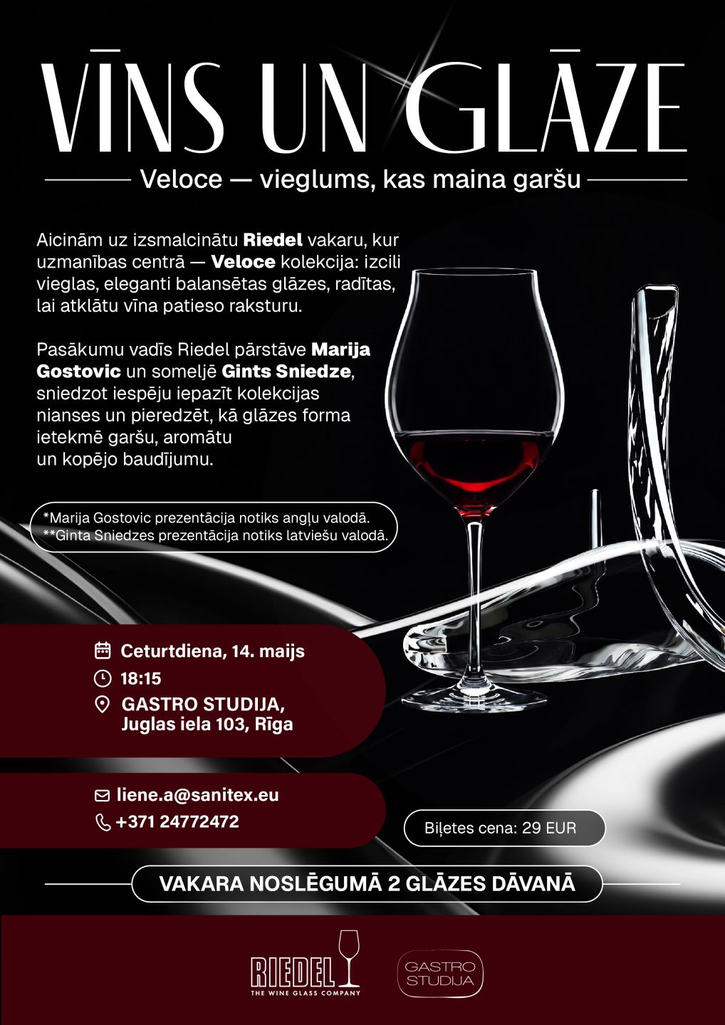 Vakara noslēgumā 2 RIEDEL glāzes dāvanā!