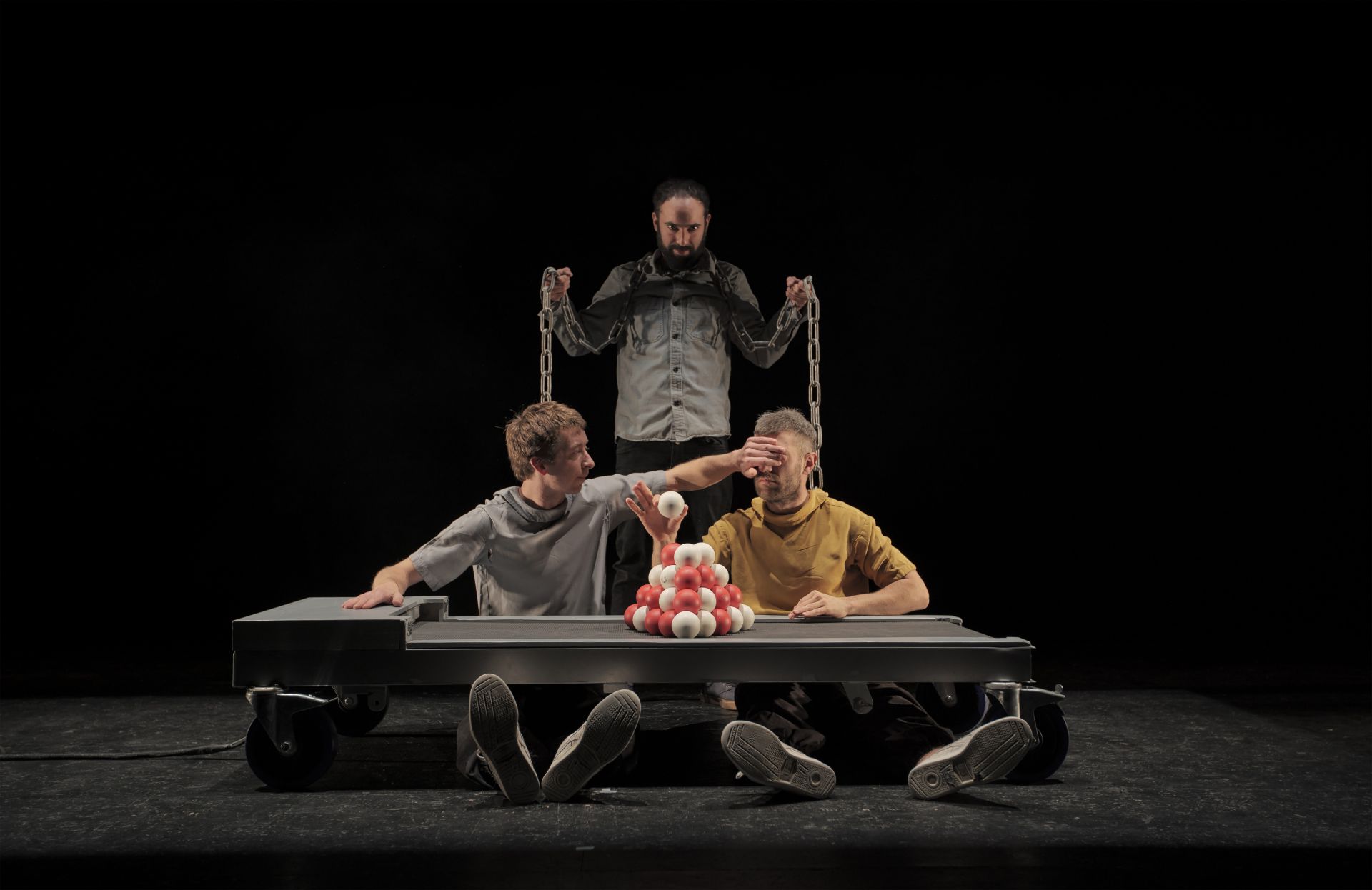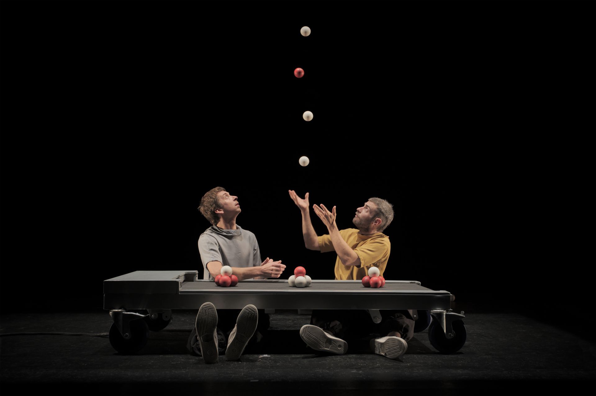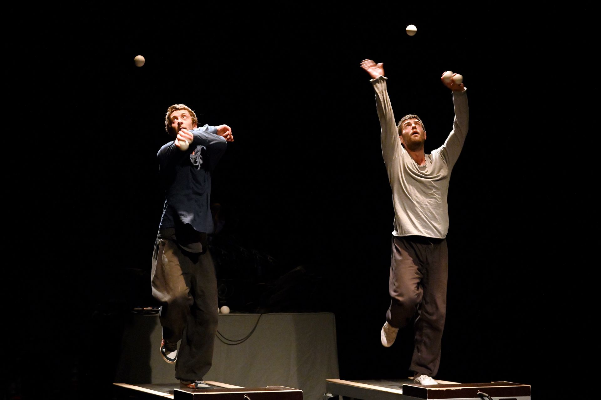 Cirka apvienības “Hippana.Maleta” (Vācija) izrādē “Skrējēji” (Runners) uz skatuves satiekas trīs mākslinieki: divi meistarīgi žonglieri un daudzpusīgs mūziķis. Divi skrejceliņi ir ne tikai scenogrāfisks, bet arī simbolisks spēles laukums – nosacījums, kurā abi žonglieri ir pakļauti kustības iepriekšnoteiktībai, mehāniskam ritmam, atkārtojuma neizbēgamībai un dzelžainiem fizikas likumiem, vienlaikus pārvaldot neskaitāmas lidojošas bumbiņas. Spāņu multiinstrumentālists Moises Mas Garsija (Moisés Mas García) rada ne tikai dzīvu skaņas ainavu, bet vienlaikus ir vēl viens groteski komiskas spriedzes avots. Tas rada starp visiem trim izpildītājiem pozitīvi uzlādētu gaisotni, un žonglēšana šajā darbā kļūst iespaidīgi horeogrāfiska un muzikāla.