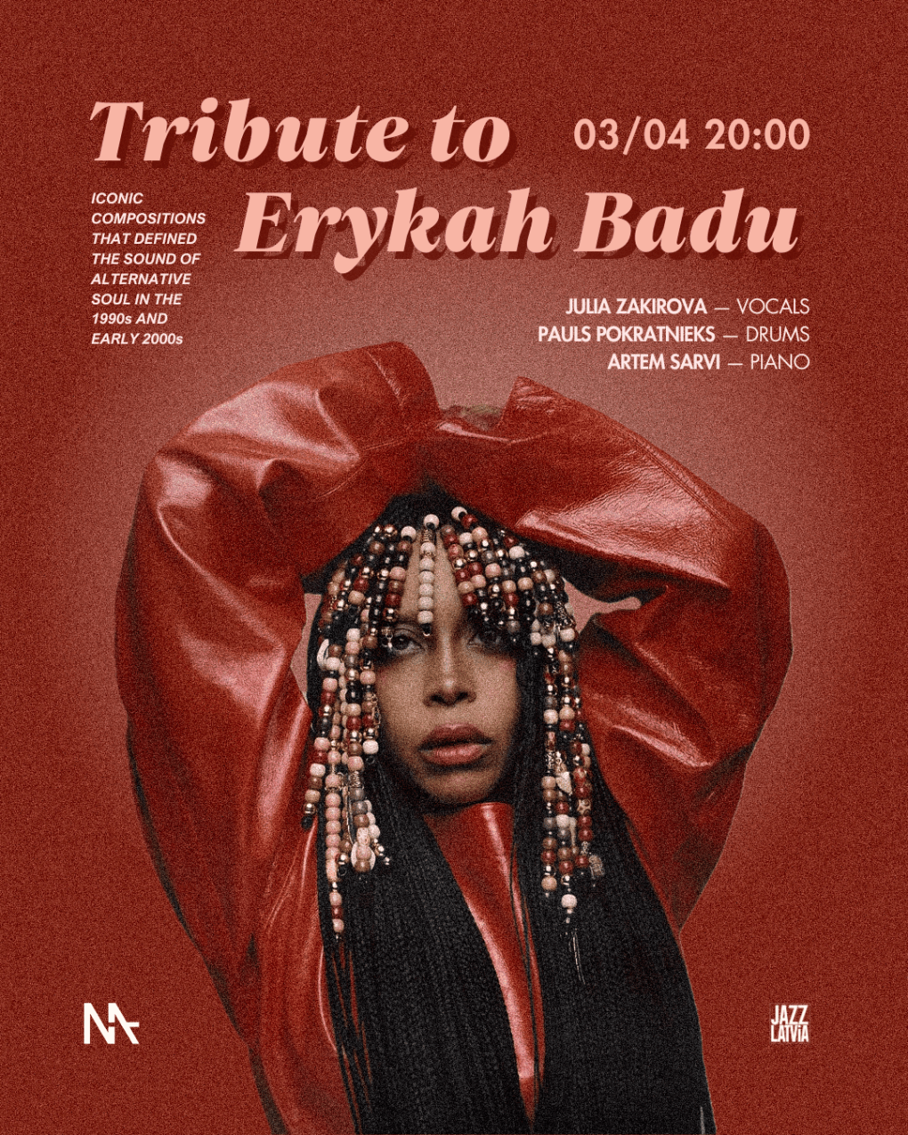 3. aprīlī džeza klubā MASA skanēs veltījums Erykah Badu — vienai no nozīmīgākajām neo-soul un mūsdienu R&B māksliniecēm. Programmā iekļauti viņas ikoniskākie skaņdarbi, kas iezīmējuši 1990. gadu un 2000. gadu sākuma alternatīvā soula skanējum.