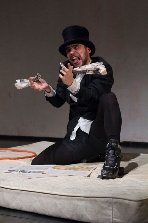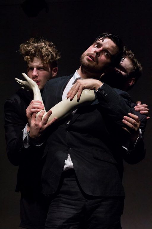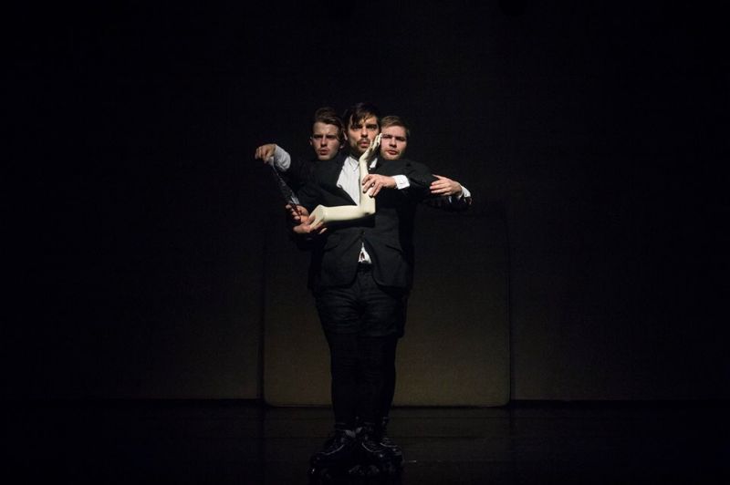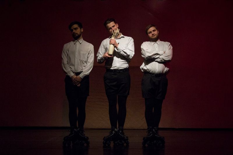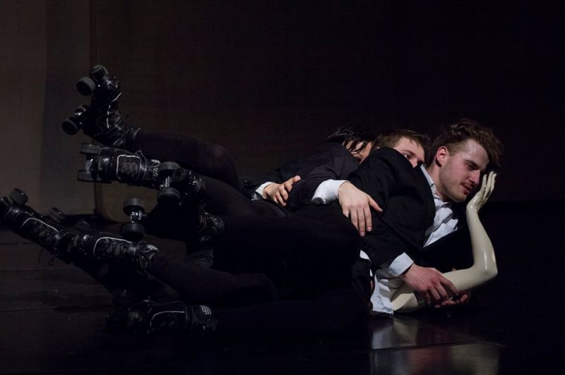 Pagājušā gada pavasarī režisora un mākslinieka Mārča Lāča Ģertrūdes ielas teātrī uzvestajā izrādē spēlē Reinis Boters, Jānis Kronis un Klāvs Mellis. Aktieri, kurus skatītāji pēdējo gadu laikā iepazinoši no citām viesizrādēm Durbē – “Melnā sperma”, “Taņas dzimšanas diena” un Latvijas Nacionālajā teātrī V. Sīļa uzvestās “Prāts”. Izrādes horeogrāfe Katrīna Albuže tikusi nominēta 2016./ 17. gada sezonas “Spēlmaņu nakts” balvai kā Gada kustību māksliniece. Vēl izrādes radošajā komandā ietilpst homponists Matīss Runtulis, gaismu māksliniece Jūlija Bondarenko, kustīgā dizaina autors Kārlis Stiģis, skrituļslidošanas instruktors Mārtiņš Eņģelis un tulkotājs Vilis Kasims.