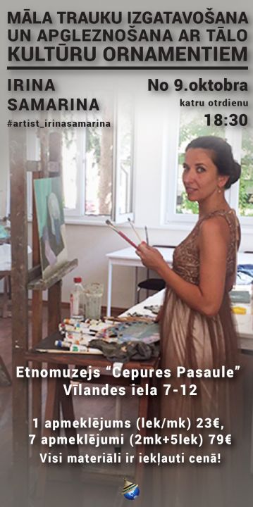 Ирина Самарина — художник, иконописец, дизайнер одежды и интерьера. Ее мастер-классы – это редкая возможность попробовать свои силы в изготовлении и росписи посуды, а также узнать много нового об особенностях узоров и орнаментов народов Латвии, Европы и других стран. История, техника и традиция латышского народного узора будут впервые представлены сквозь призму прикладного искусства разных мировых культур.