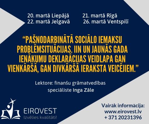 Организатор мероприятия "Pašnodarbinātā sociālo iemaksu problēmsituācijas": EiroVest SIA